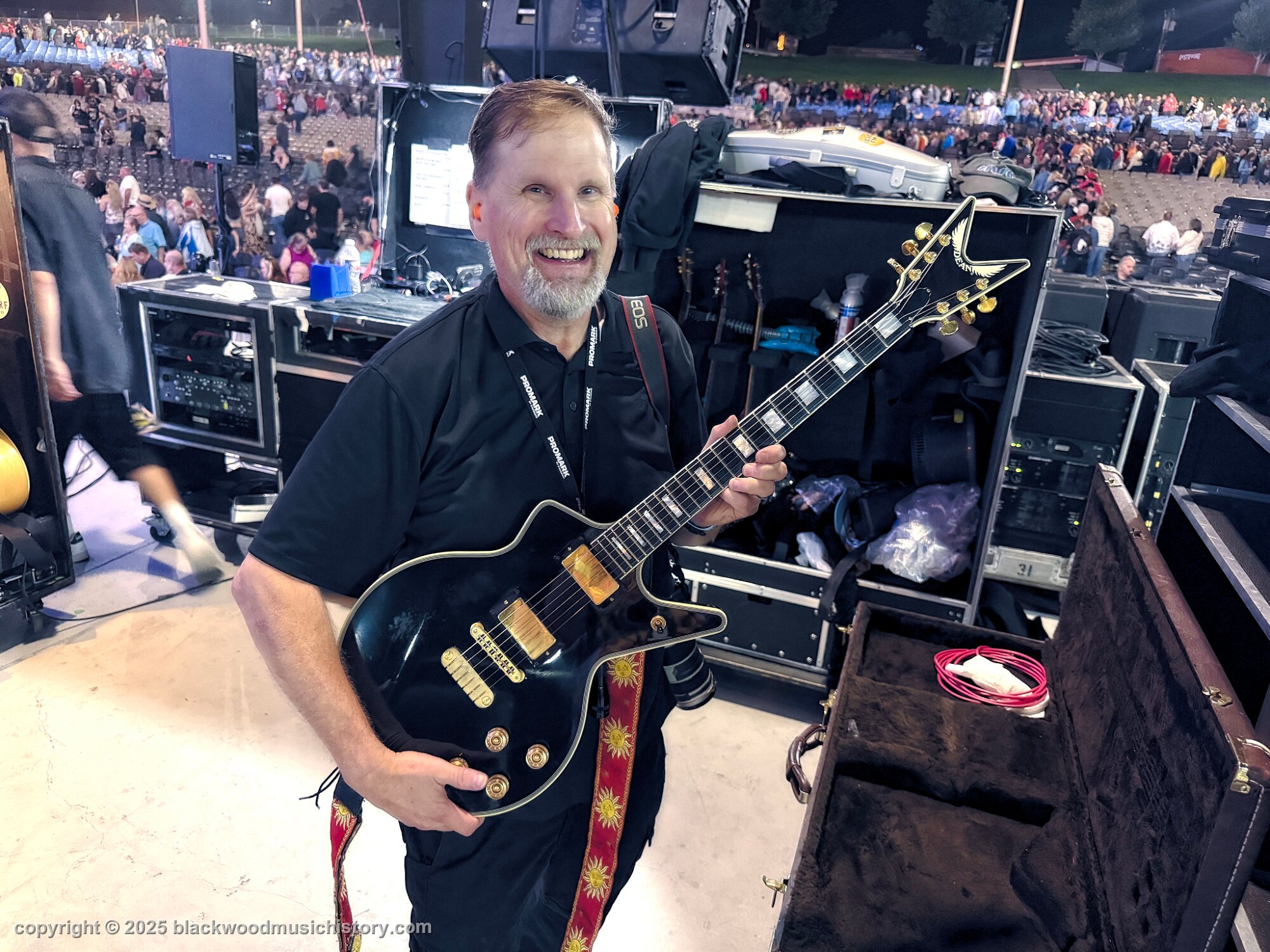 Kansas Photographer, David Carstens and Kerry's iconic black Dean Cadillac guitar